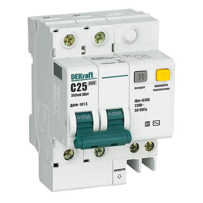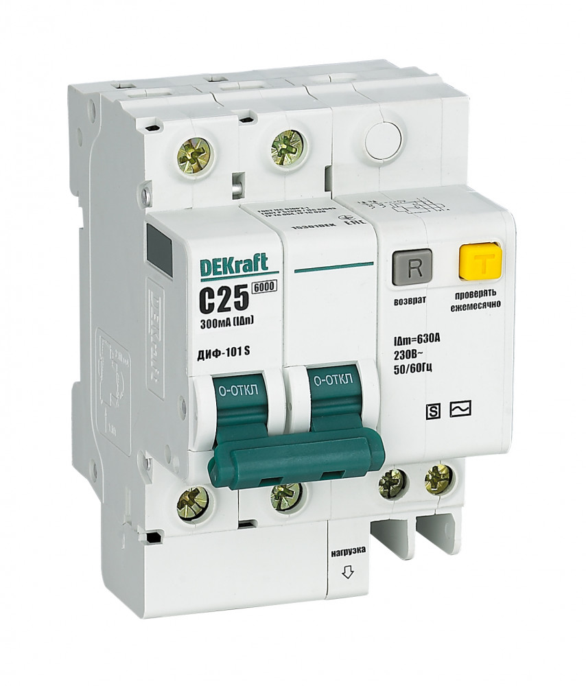 Дифавтомат DEKraft ДИФ-101 2P 25А (C) 6 кА, 300 мА (S), 15305DEK - это автоматический выключатель, который объединяет в себе функции дифференциального тока и автоматического выключателя. Он предназначен для защиты электрических цепей от перегрузок и короткого замыкания.Данный дифавтомат имеет два полюса и номинальный ток 25А. Он способен выдерживать ток короткого замыкания до 6 кА, что обеспечивает надежную защиту от возможных повреждений и пожаров.