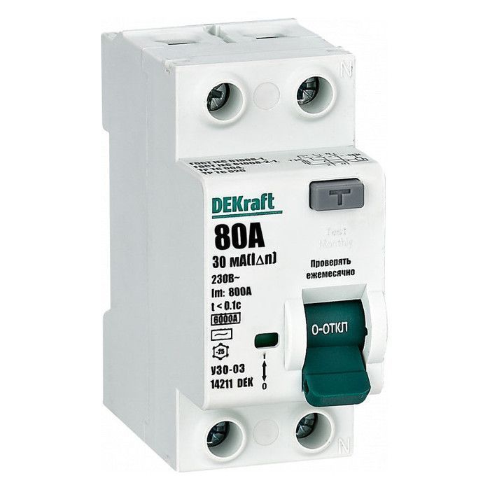 УЗО DEKraft УЗО-03 2P 80А 6 кА, 30 мА (AC), 14211DEK - это двухполюсное устройство защитного отключения, предназначенное для обеспечения безопасности электрических сетей и оборудования. Данное УЗО имеет номинальный ток 80А, предельный короткозамыкательный ток 6 кА и чувствительность к утечке тока 30 мА (переменного тока). Модель 14211DEK отличается надежностью и качеством исполнения, что гарантирует эффективную защиту от возможных аварийных ситуаций и повреждений оборудования.