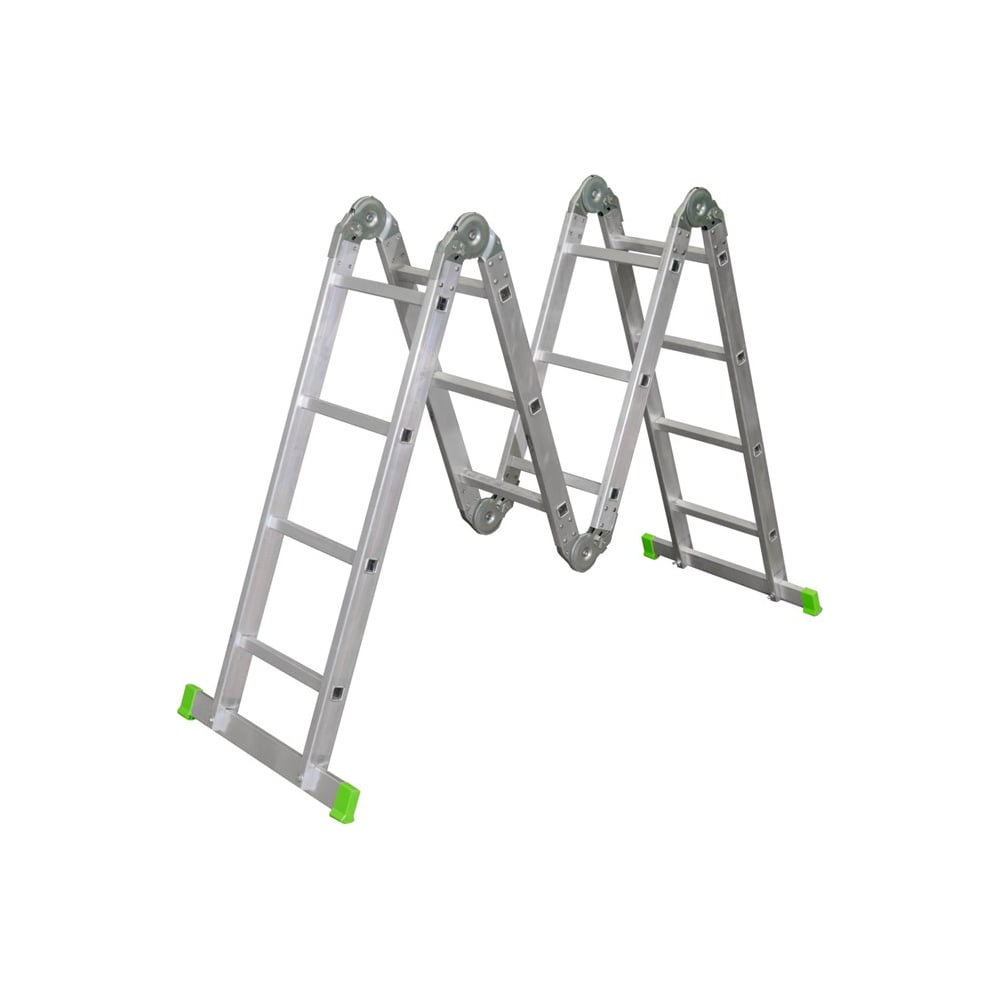 Лестница-трансформер Sarayli предназначена для ремонтно-эксплуатационных работ и хозяйственно-бытовых нужд. В рабочем положении трансформируется в следующие варианты: лестница приставная, лестница свободностоящая, лестница-помост. Опорные концы тетив лестницы имеют башмаки из нескользящего материала для предотвращения возможности сдвига и опрокидывания во время работы. Конструкция лестницы обеспечивает правильное и свободное складывание-раскладывание во все варианты трансформации.