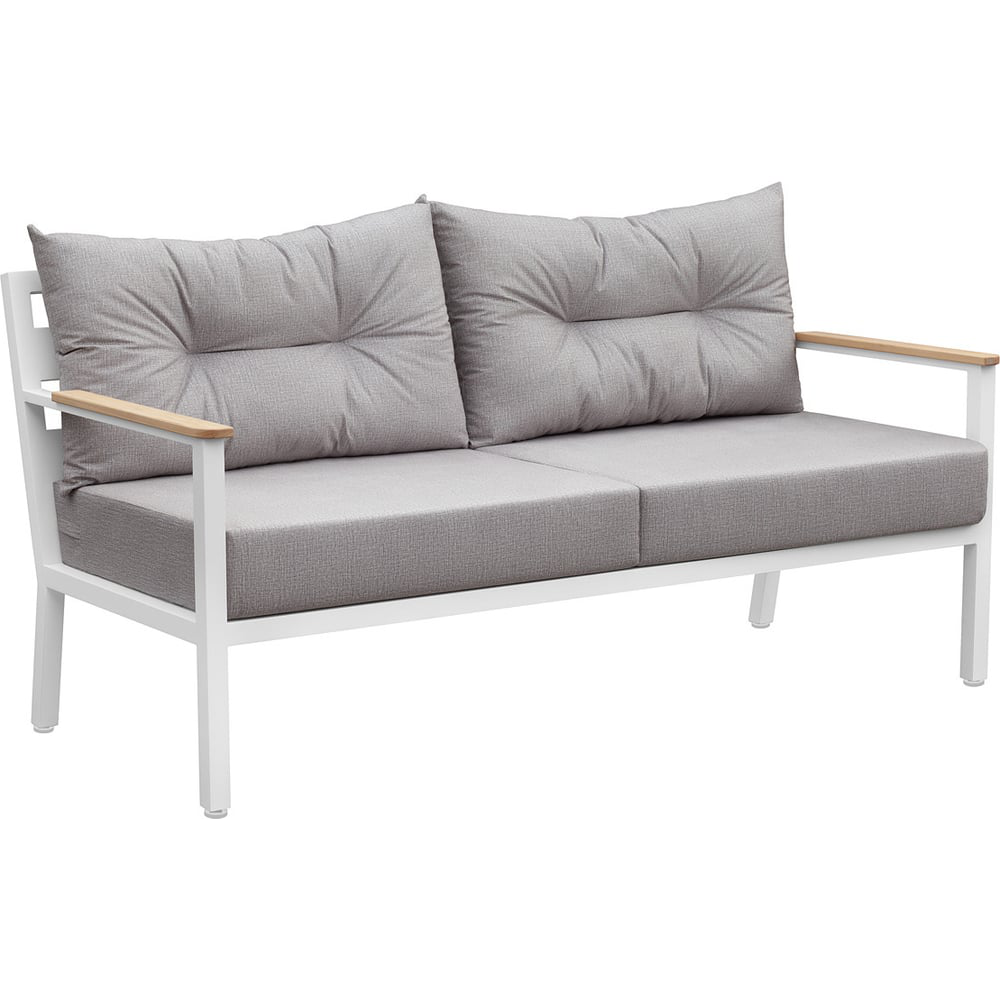 Садовый диван из коллекции "Santorini" сочетает в себе элегантный дизайн, комфорт и долговечность. Легкие формы алюминиевого каркаса, устойчивого к любым погодным условиям, отлично дополняются деревянными подлокотниками, покрытыми маслом, что гарантирует их долговечность при эксплуатации на улице. Регулируемые по высоте ножки обеспечат комфортное размещение дивана даже на неидеально ровной поверхности. Комфорт обеспечивается четырьмя подушками, которые прилагаются к дивану. В подушках используется высококачественный пенополиуретан оптимальной для комфортной посадки плотности, что позволяет им прекрасно держать форму и долго сохранять свой внешний вид. Съёмные чехлы подушек сшиты из ткани также предназначенной для эксплуатации в уличных условиях и имеют высокий класс износостойкости. Каркас уличного дивана изготовлен из алюминиевой профильной трубы (толщина стенок 3 мм) с использованием высокоточного лазерного оборудования, что гарантирует максимальное качество, надежность и эстетику сварных швов и изделия в целом. Дополнительные характеристики: Набивка: большой подушки — поролон, подушки для спины — синтепон, упакованы в несъёмный чехол из спанбонда; Высота подушки: 18 см; Регулируемые ножки с пластиковым основанием; Высота от пола до сидения (металл) 32 см.