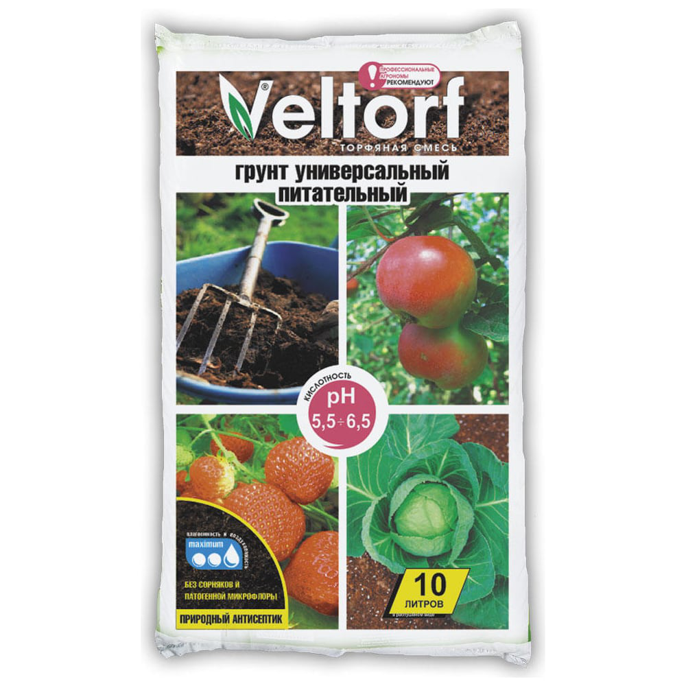 Универсальный грунт Veltorf 10 л FP10050073 - смесь на основе торфа разной степени разложения. Подходит для любых овощных, зеленых, цветочных культур, декоративных деревьев и кустарников, газона. Используется в открытом и защищенном грунте. Смесь готова к применению, не требует разбавления.